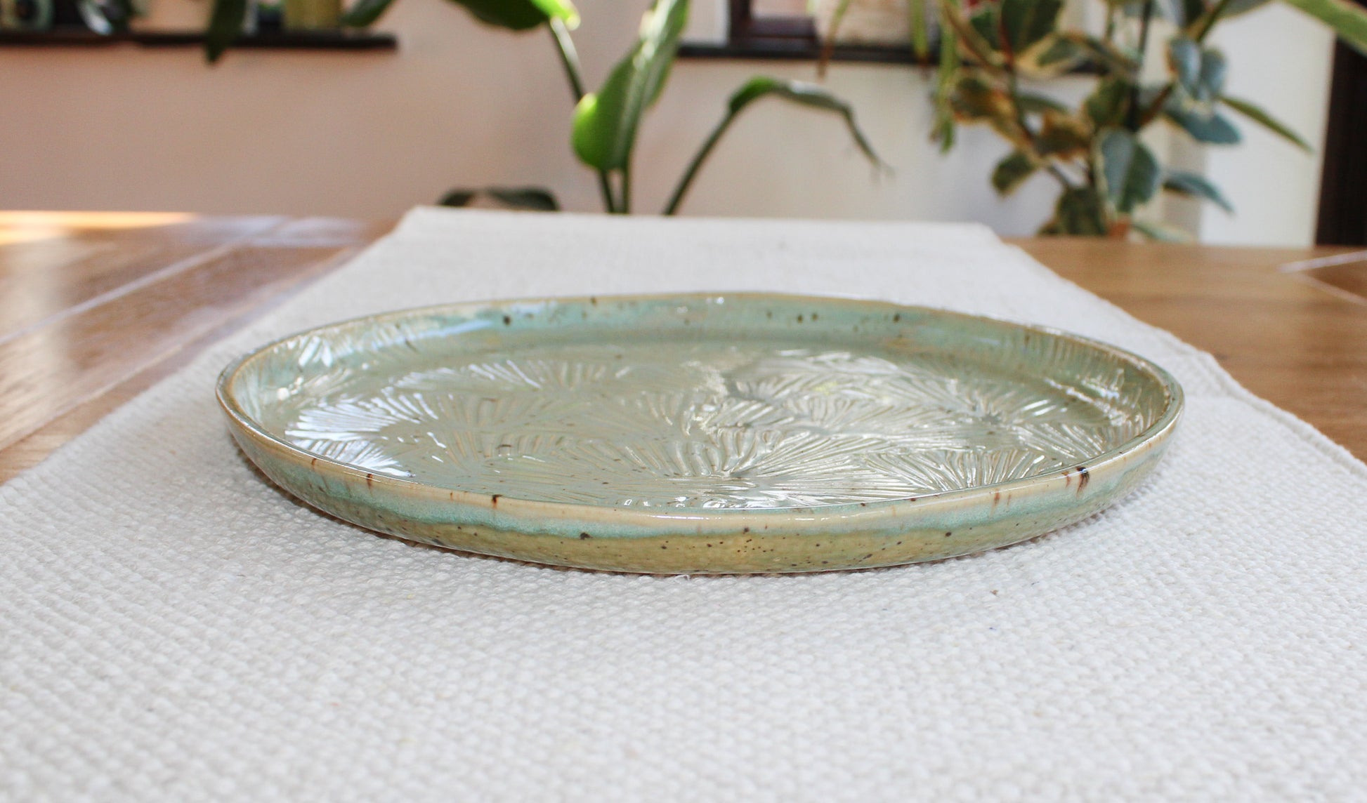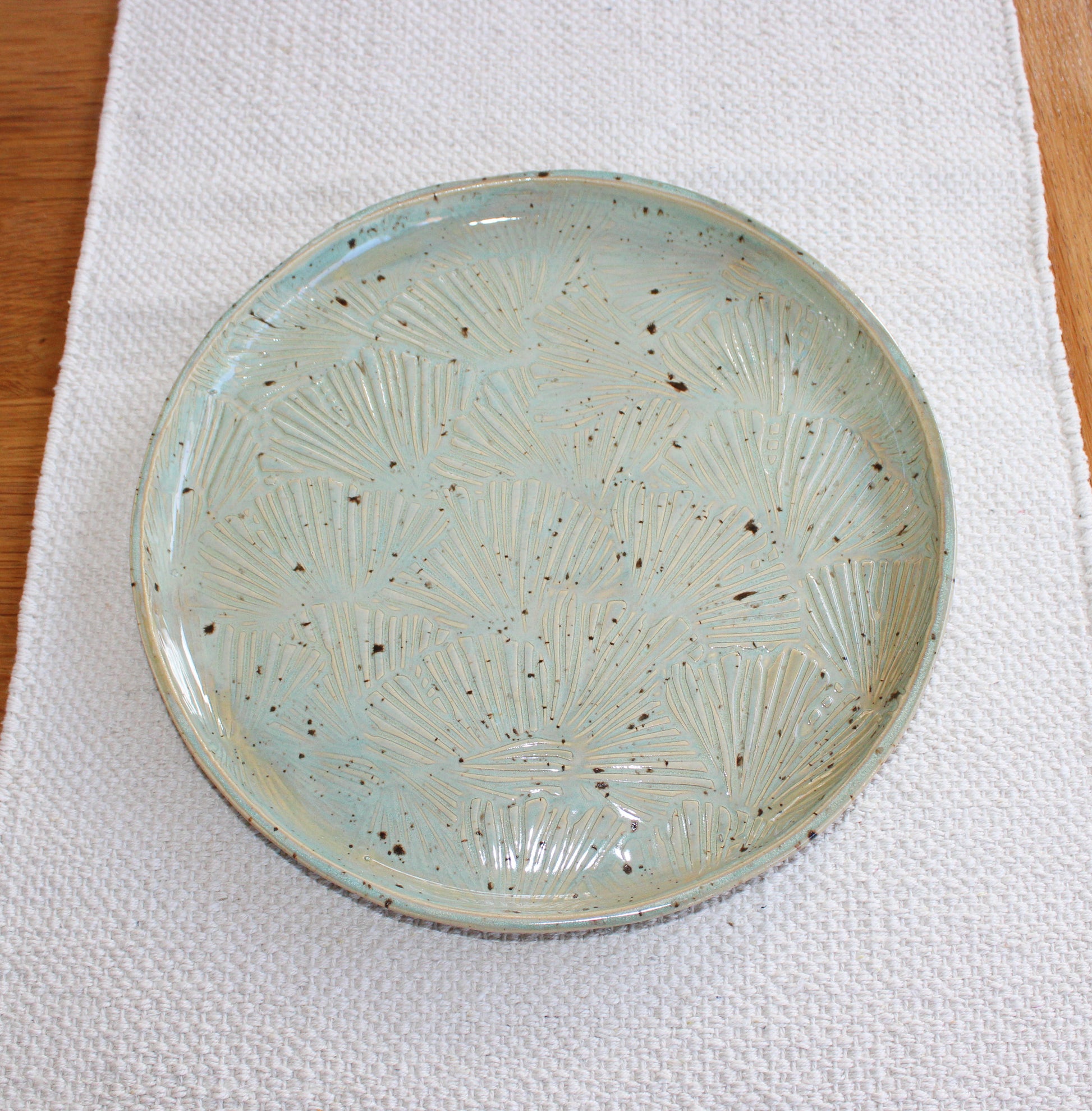 Add a soft touch of elegance to your kitchen with our handmade round plate. Delicately patterned, it makes a charming center piece for your table. Whether serving light meal or enhancing your decor, this plate brings handmade beauty to your space.